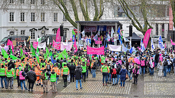 4.800 Beschäftigte des öffentlichen Dienstes haben in Stuttgart für Entgelterhöhungen und bessere Arbeitsbedingungen demonstriert.